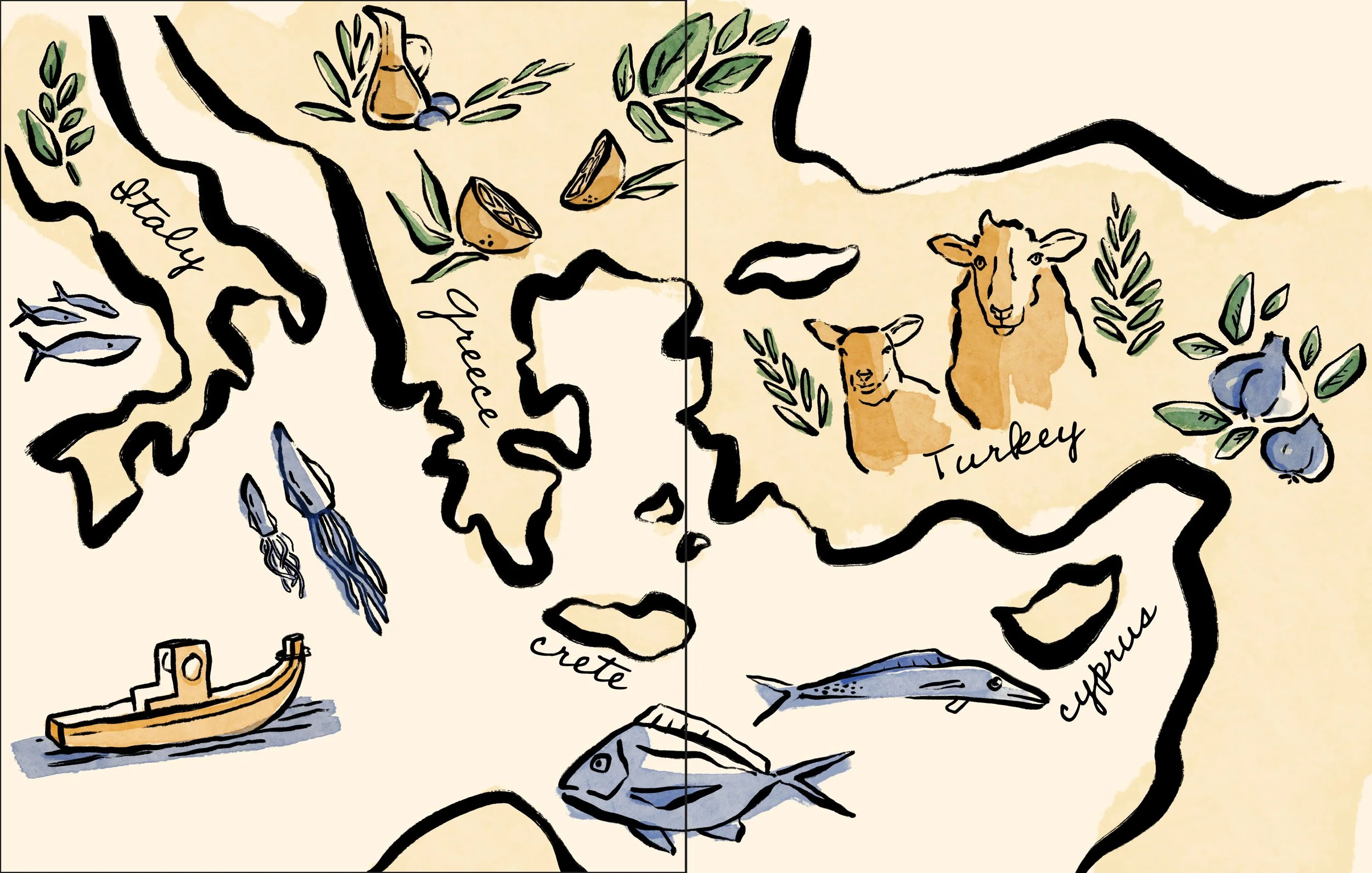 A coffee table cook book by Jose Andres. Interior Map Illustration.